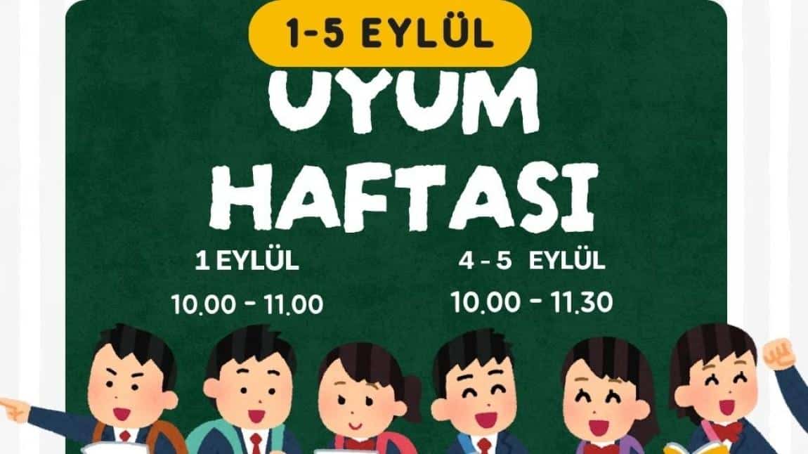 1. Sınıfa başlayacak öğrencilerimiz, 1, 4 ve 5 Eylül tarihleri arasında “Uyum Haftası” programına katılacaklardır.
